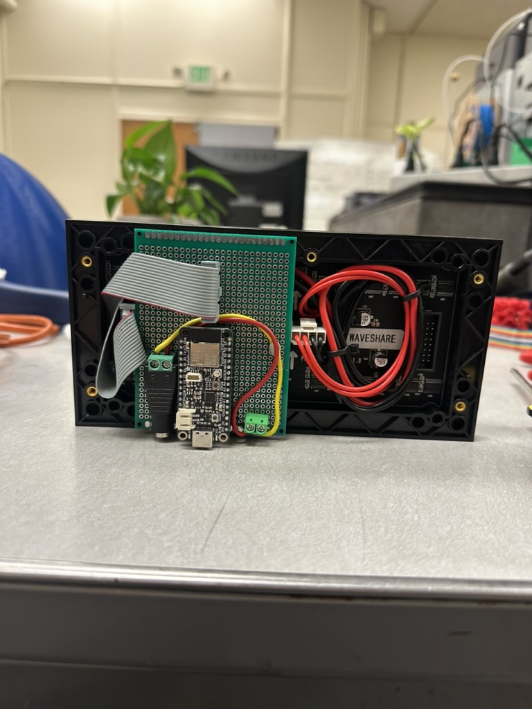- Display: Waveshare 64×32 RGB LED matrix (HUB75-style routing).